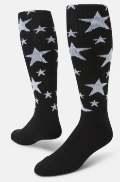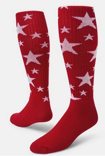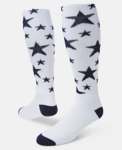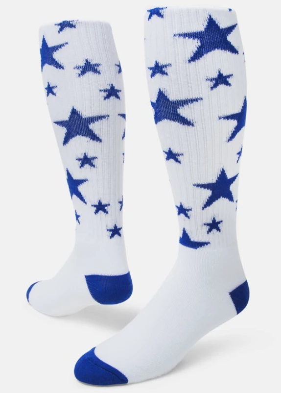 Sporty stars in vivid colors pop against a white background making our Stars Knee-high Sock a stellar choice.